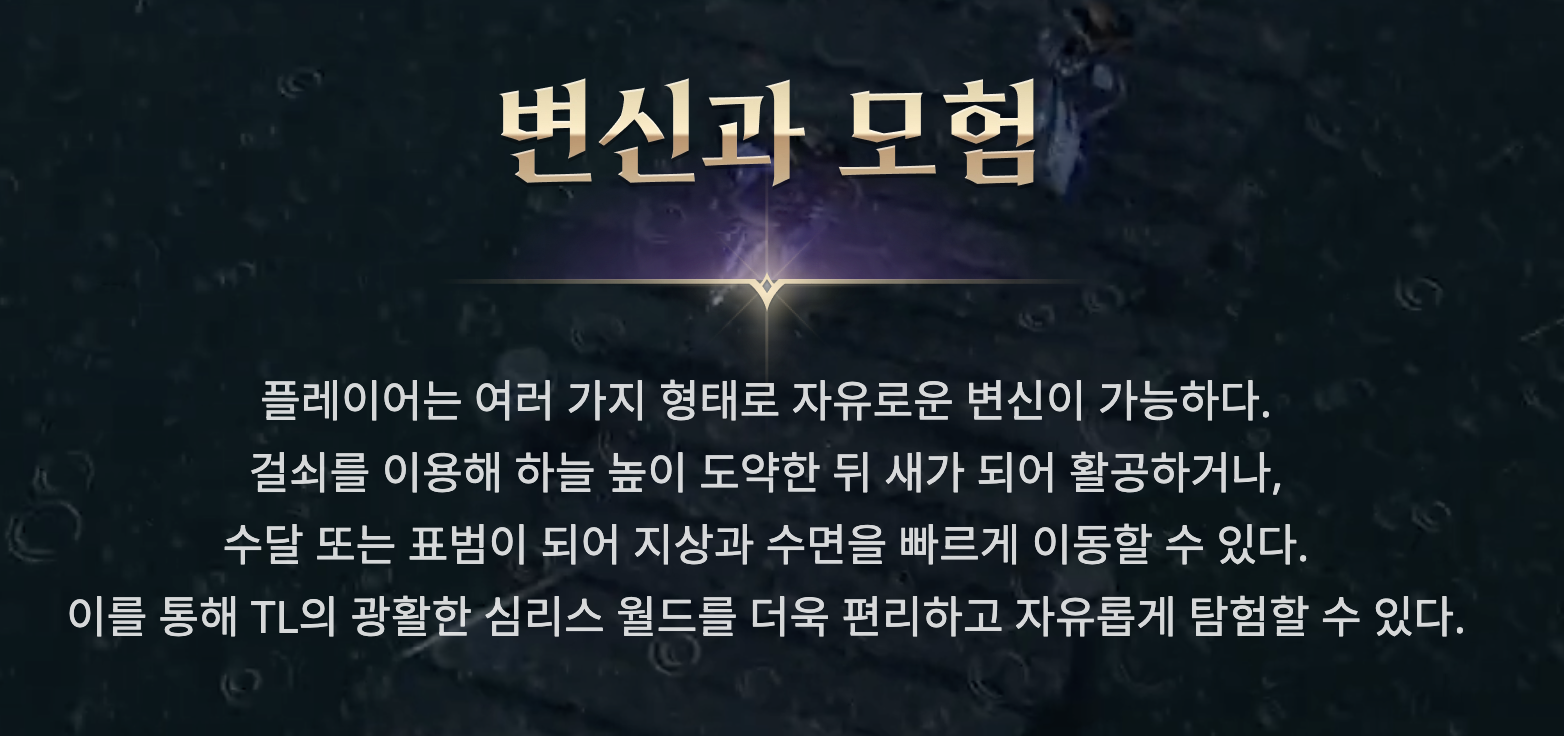 쓰론앤리버티 베타 테스트 이후로 많은 것들이 변했지만, 변신과 아미토이는 아직 내려놓지 못했나 봅니다.